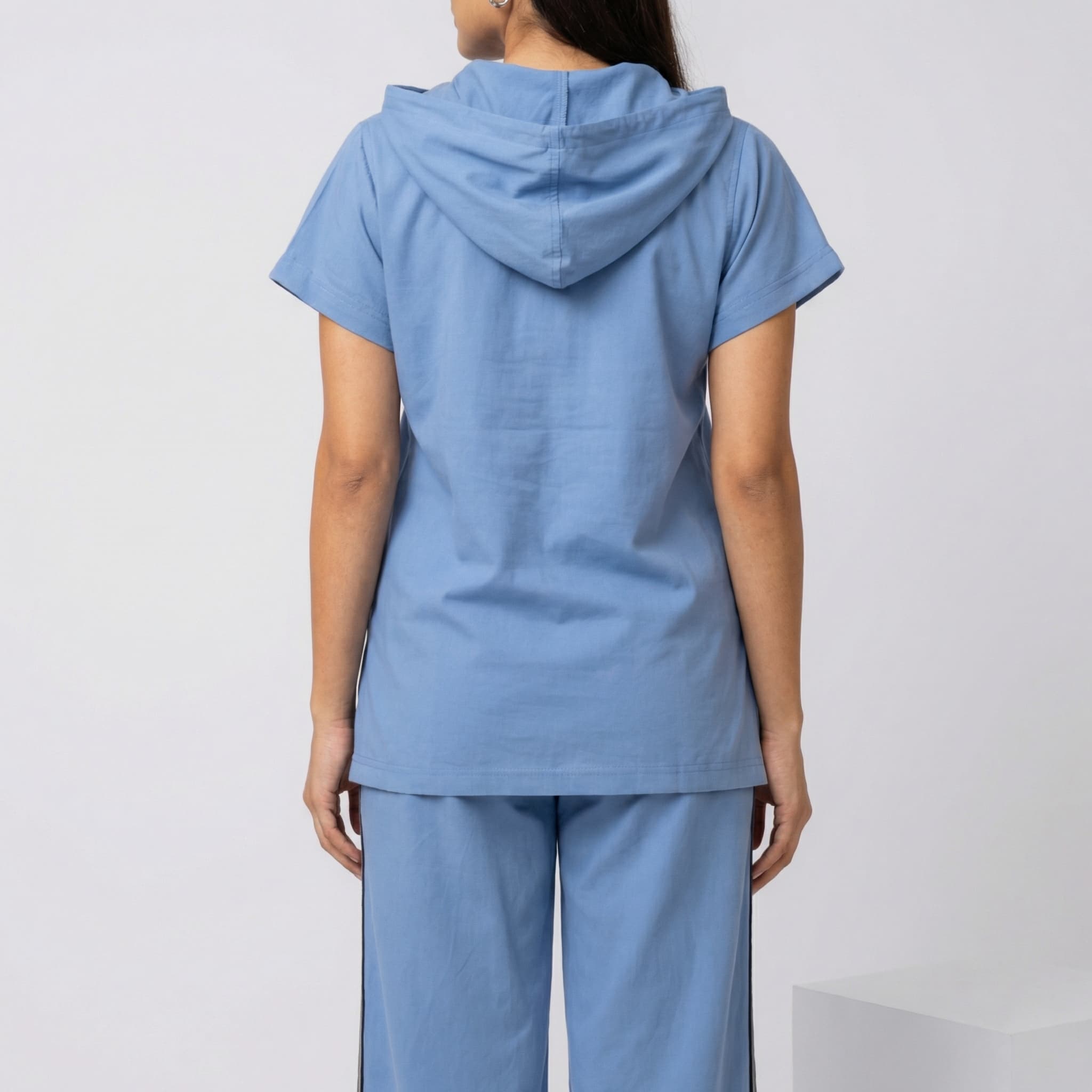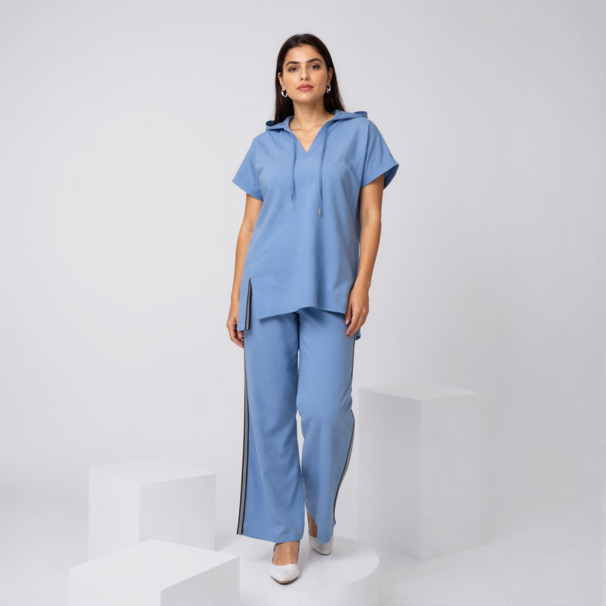 Wear the hoodie jogger set with sneakers for a relaxed weekend vibe, or dress it up with loafers and a blazer for a smart‑casual office look. The neutral tones and simple silhouette allow you to layer with a denim jacket, a lightweight cardigan, or a structured coat, making it suitable for any season. The set’s roomy fit and relaxed cut provide a carefree look that transitions smoothly from day to night.